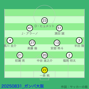 8月最終日の日曜日の夜に、ポヤトスが平塚のピッチに送り出した11人は以下の通り。