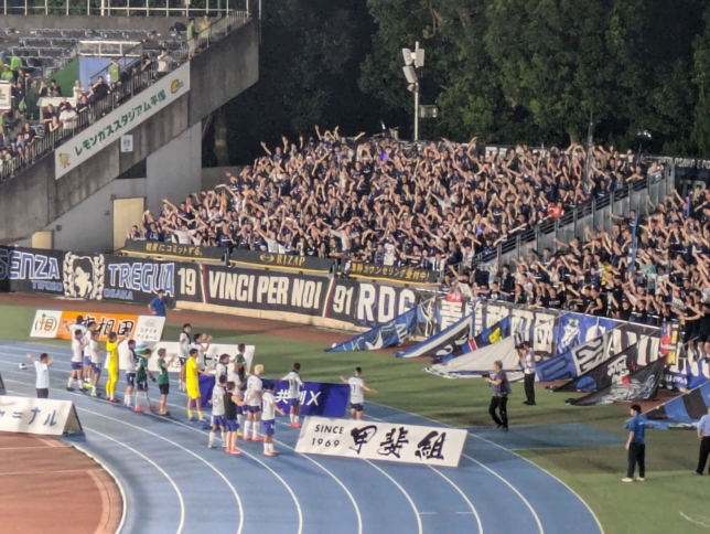これを決めることが出来ず、ガンバサポ全員がズッコけたところで試合終了。
