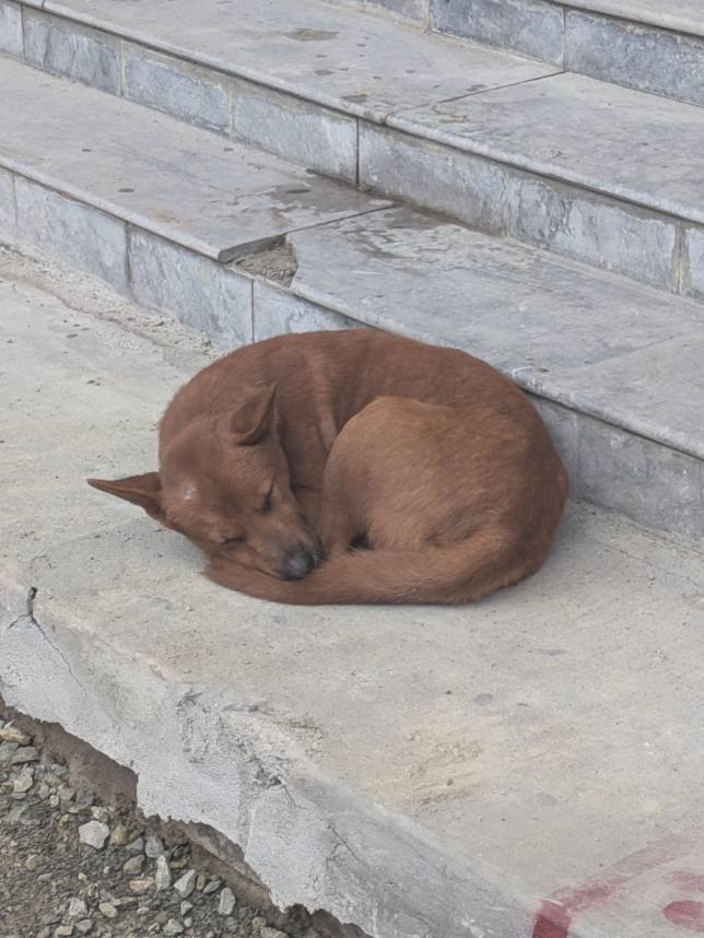 ガンバサポーターの待機列の近くで犬が爆睡していました。