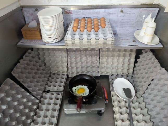 この店の特徴として、セルフサービスで目玉焼きが作れる。