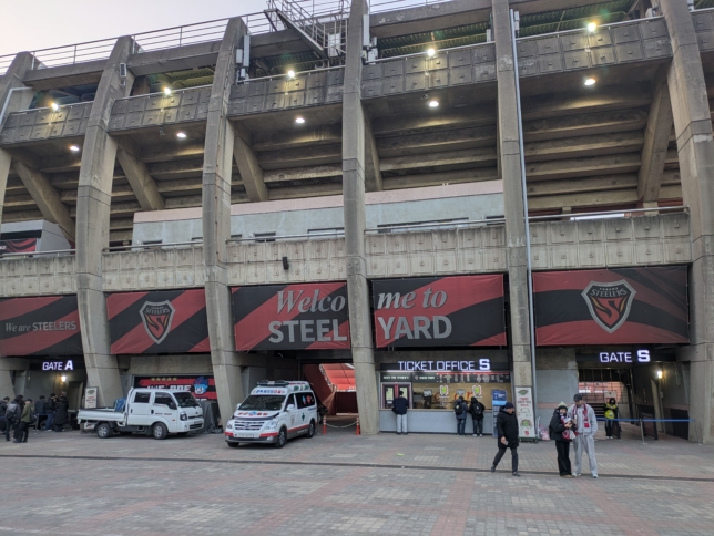 売店が少ないけど、浦項に限らず韓国のスタジアムはどこもこんな感じだね。