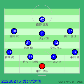 ヴィッシング・ガンバのスタメン11人は以下の通り。