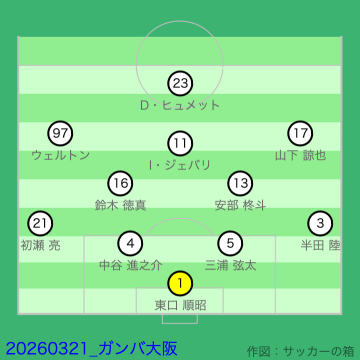 昨季の37節の雪辱を期すガンバ大阪のスタメン11人は以下の通り。