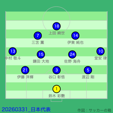 31年ぶりにイングランドサッカーの聖地に降り立った日本代表のスタメンは以下の通り。